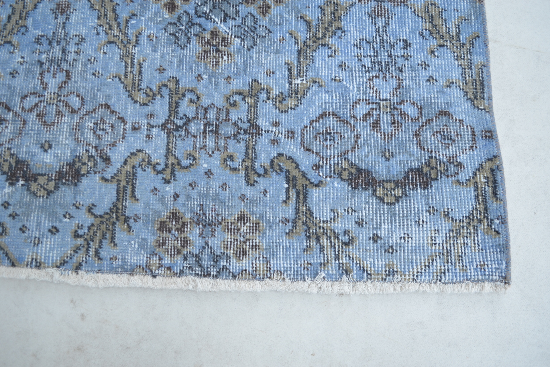 DOKUMA ESKİTME VINTAGE HALISINDA MAVİ-GOLD TONLARI KULLANILMIŞTIR.SÜPER UYGUN