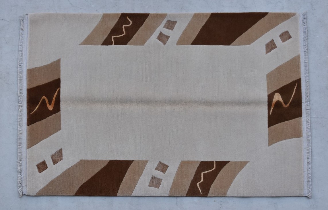 2.40x1.70=4.08, YENİ, İYİ KALİTE EL DOKUMASI, YÜN DOKUMA, ATKI ÇÖZGÜSÜ PAMUK DOKUMADIR, SEVİLEN HER DEKORASYONA UYGUN EKRU ZEMİN RENK VE KAHVE TONLAR, GÖZDE MODERN ÇİZGİLER KULLANILMIŞTIR. SÜPER UYGUN FİYAT.