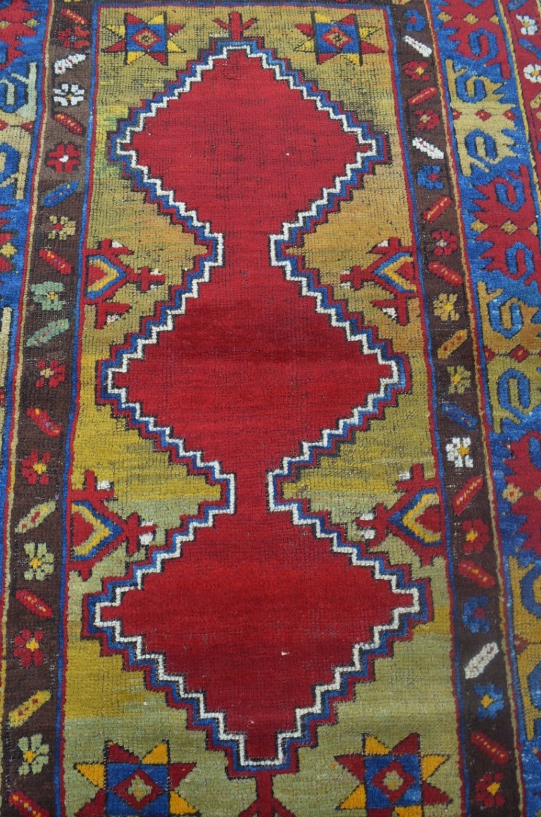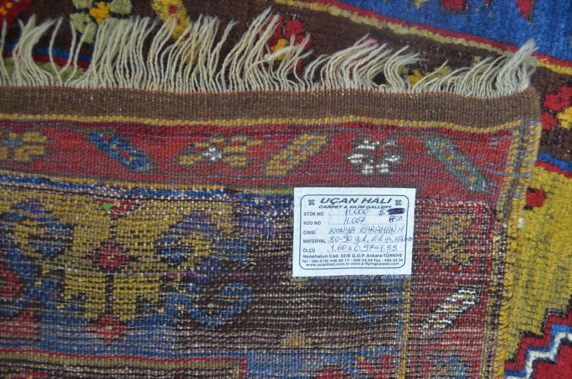 1.60x0.97=1.55 m2, 80-90 YIL ESKİ, TAMAMI EL İPİ VE KÖK BOYAYLA DOKUNMUŞTUR, BORDÜRDE ELİ BELİNDE MOTİFLERI DOKUNMUŞTUR, NADİR KATALOG PARÇADIR.KONDÜSYONU İYİDİR.