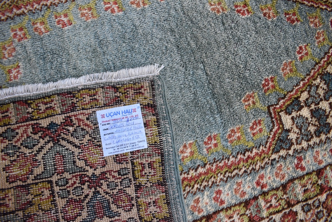 1.46x1.04=1.52 m2, 110-120 YIL ESKİ,ÇOK NADİR BATI ANADOLU HALISININ KARAKTERİSTİK DESENİ VE RENKLERİ KULLANILMIŞ, TAMAMI YÜN VE KÖK BOYA, SÜPER İNCE DOKUMA, KATALOG PARÇA, KONDÜSYONU SÜPERDİR.