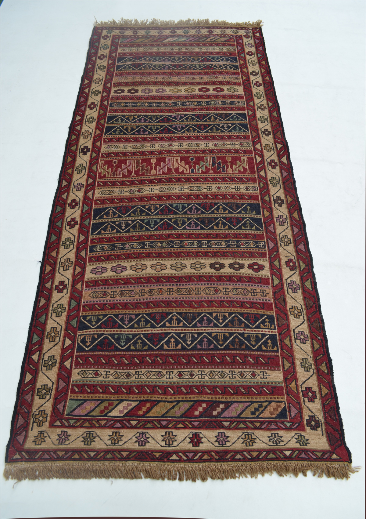 2.07x0.85=1.76, YENİ, SUMAK TEKNİKLE DOKUNMUŞ KÖK BOYA SÜPER İNCE YOLLUK ÖLÇÜSÜ İRAN KİLİMİ.