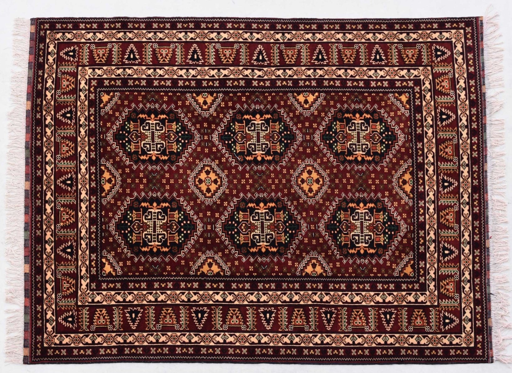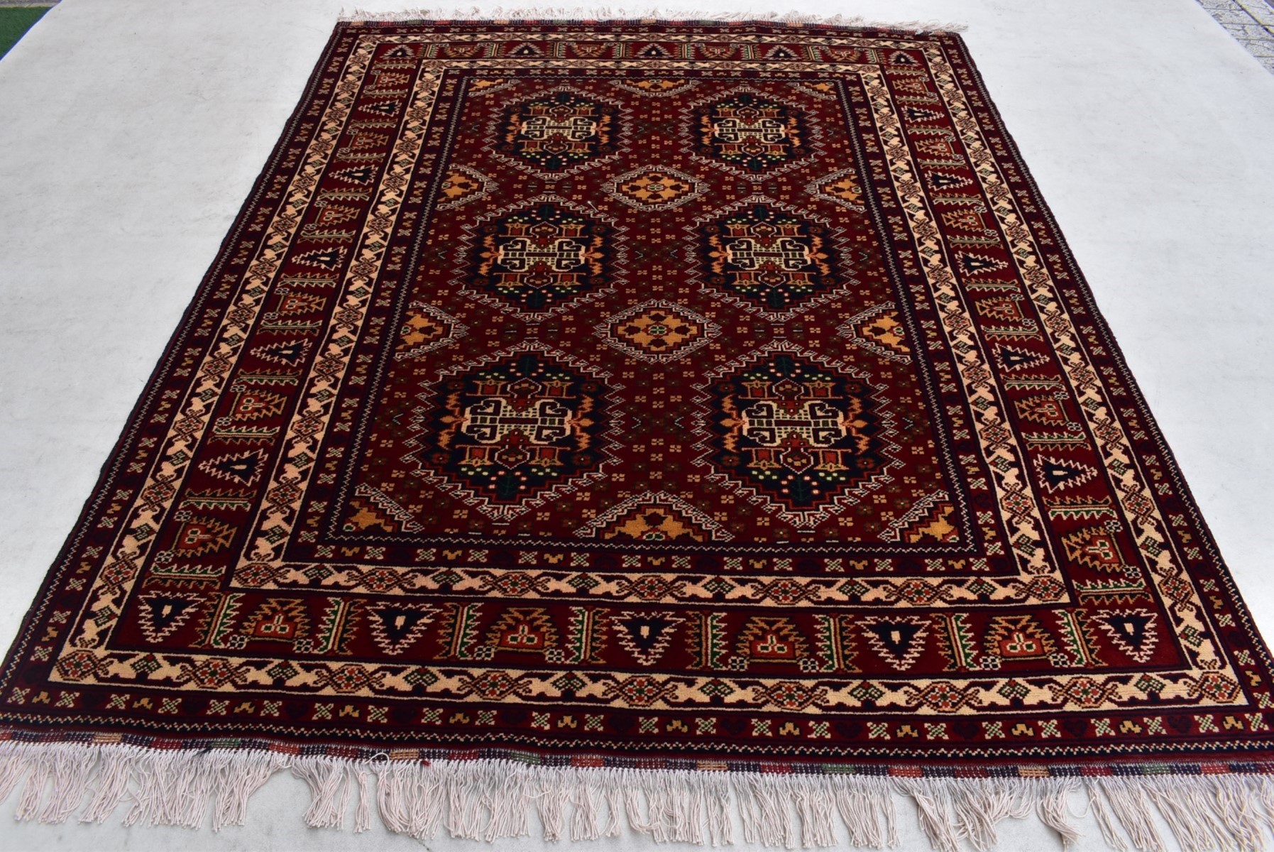 1.94x1.48=2.87, YENİ SÜPER KALİTE AFGAN ALİ HOCA HALININ 1 CM SİNDE 49 DÜĞÜM BULUNMAKTADIR.TAMAMI KÖK BOYA VE ATKI ÇÖZGÜSÜ PAMUKDUR. NADİR DESENLER KULLANILMIŞTIR.FİYATI ÇOK UYGUNDUR.