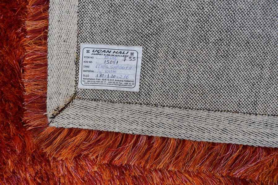 1.80x1.20=2.16, YENİ, % 100 POLYAMID, MAKİNA DOKUMA MODERN İTHAL SHAGGY HALISINDA ÇARPICI TURUNCU RENK KULLANILMIŞ, KAÇIRILMAZ FİYAT.