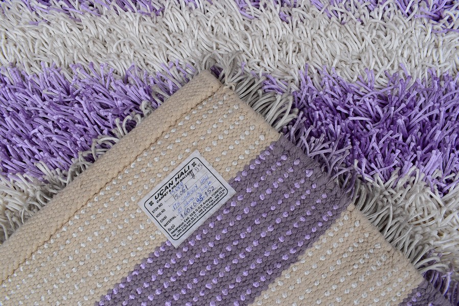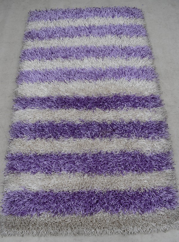 1.60x0.95=1.52, YENİ, % 100 POLYAMID, EL DOKUMA MODERN İTHAL HALI, NADİR DOKUNAN ÇİZGİLİ DESEN KULLANILMIŞ, SEVİLEN LİLA-BEYAZ RENKLER.