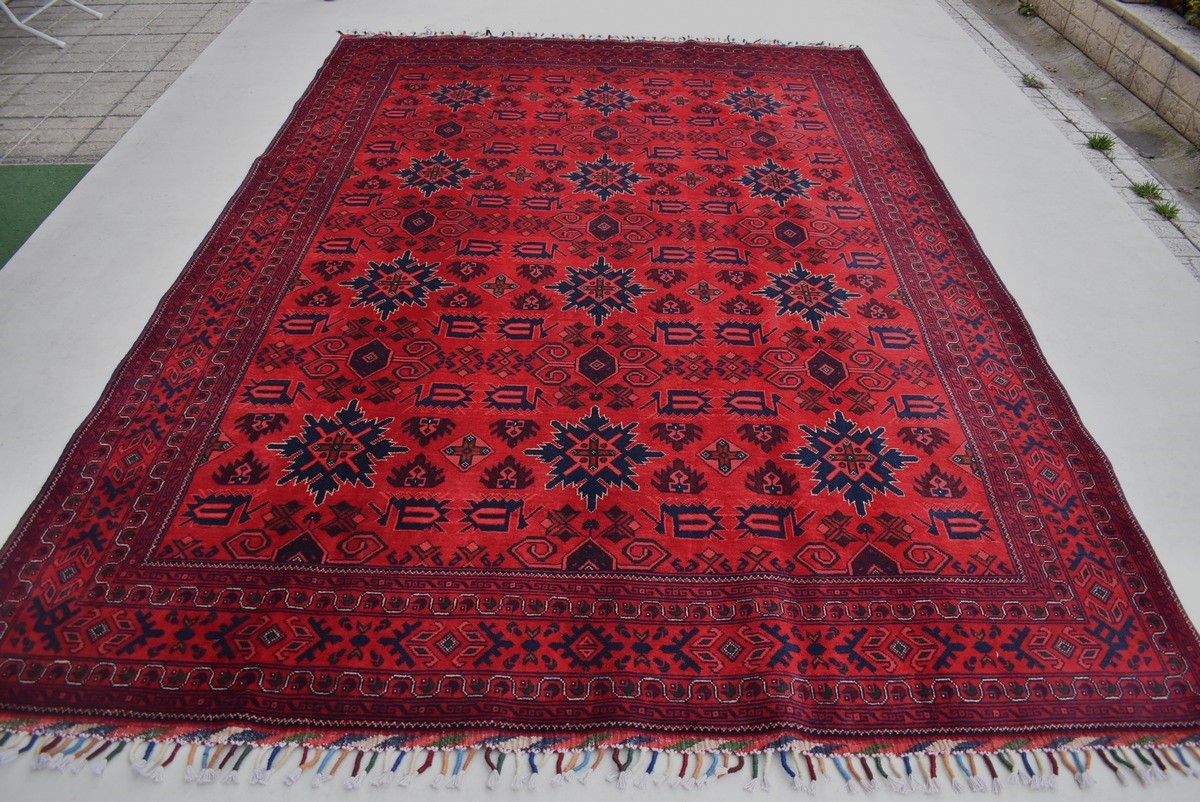 2.87x1.98=5.68, PARLAK YÜNÜ VE ÇOK GÜZEL RENK ARMONİSİYLE SÜPER KALİTE ERSARİ HALISI, TAMAMI KÖK BOYA VE YENİ DOKUMA, NADİR DOKUNAN DESENLER VE SEVİLEN KİREMİT RENK TONLARI KULLANILMIŞ.