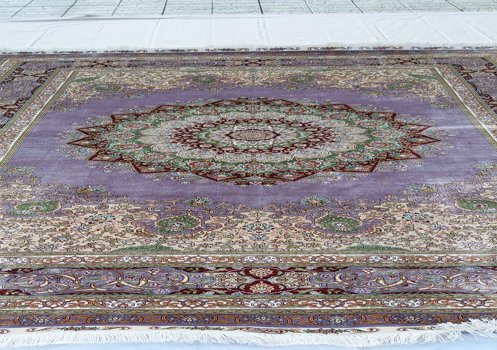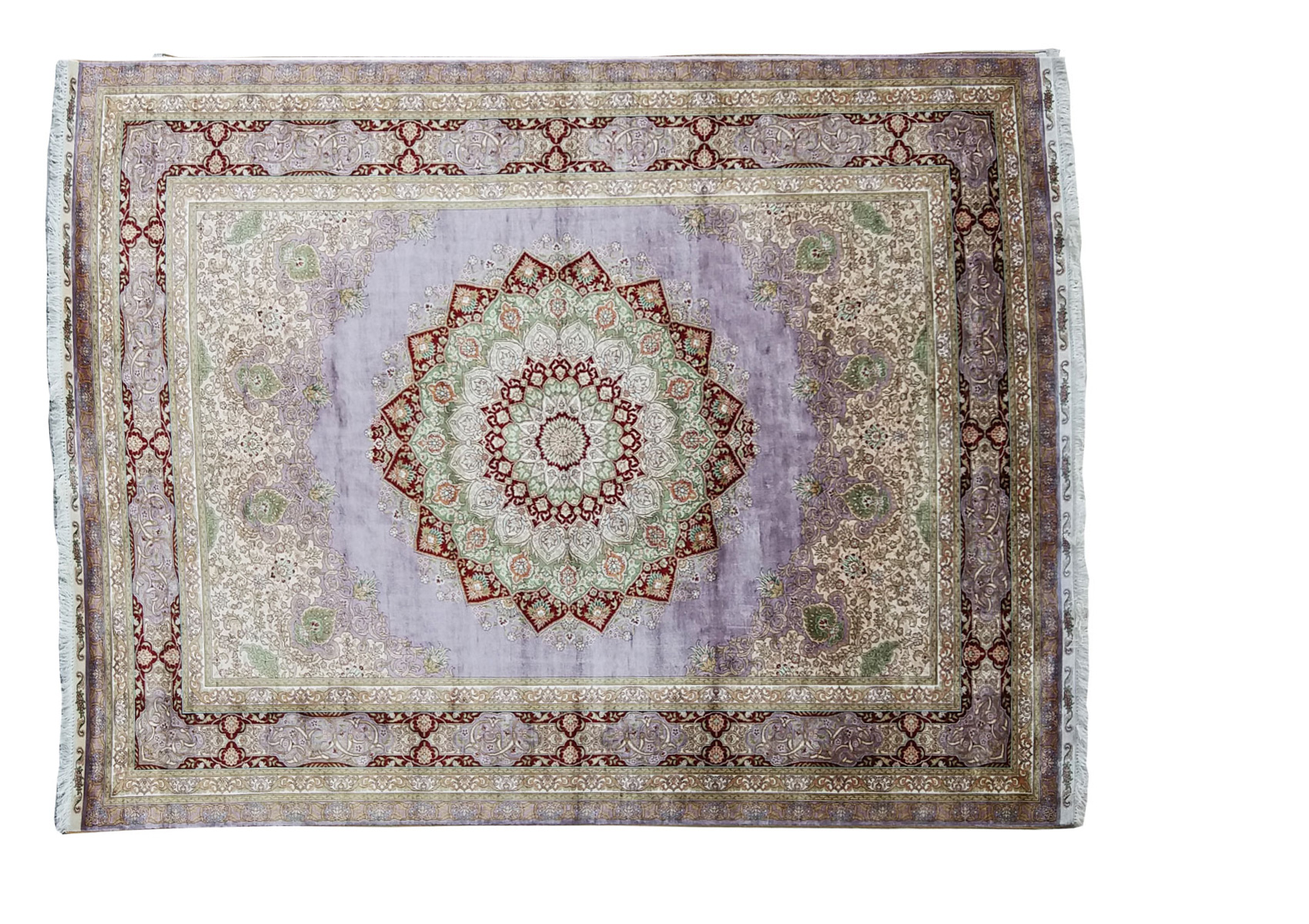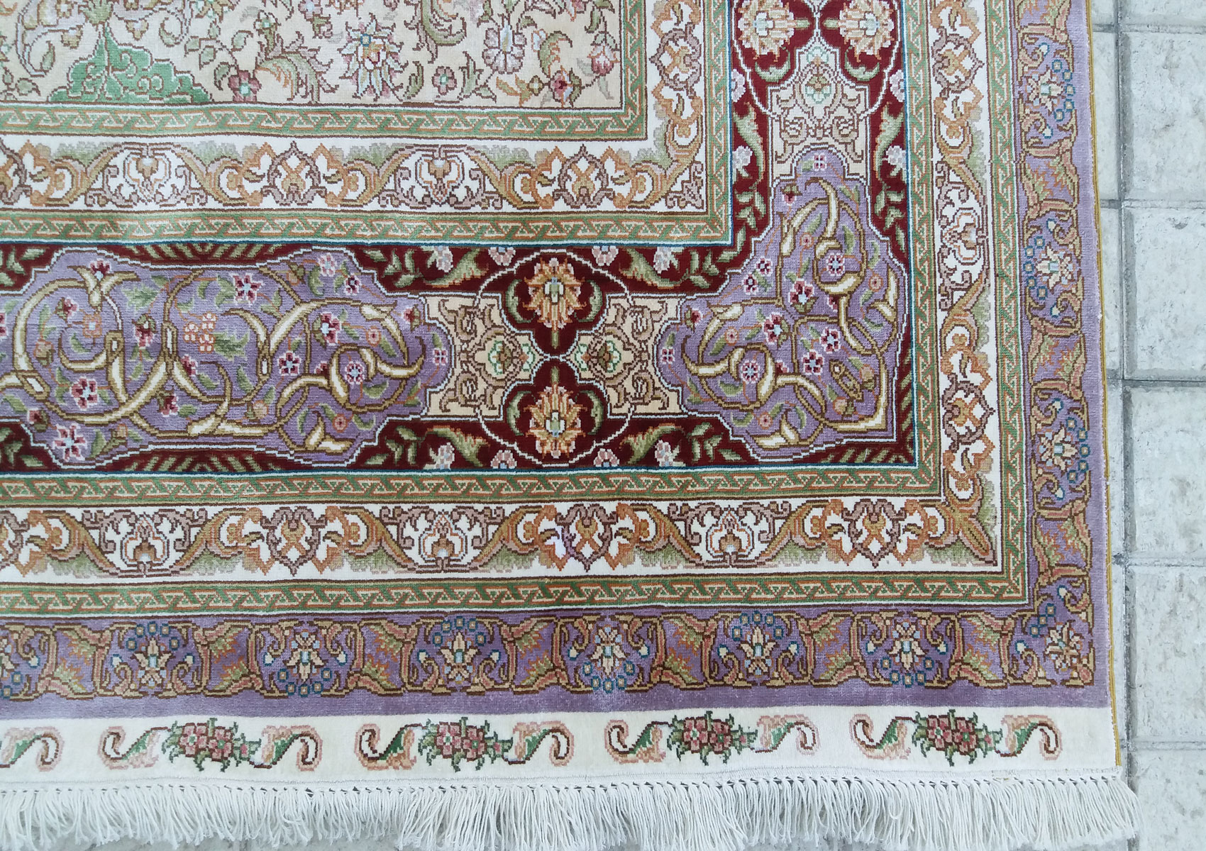 2.40x1.69=4.06, YENİ, SÜPER KALİTEYLE DOKUNMUŞ KUM İPEK HALININ 1 cm²’sinde 100 DÜĞÜM BULUNMAKTADIR.10x10 İRAN KUM İPEK HALISI NADİR DOKUNAN ÖLÇÜDÜR. MUHTEŞEM LİLA TONLAR VE KALİTEYLE DOKUNMUŞTUR.KUSURSUZDUR.
