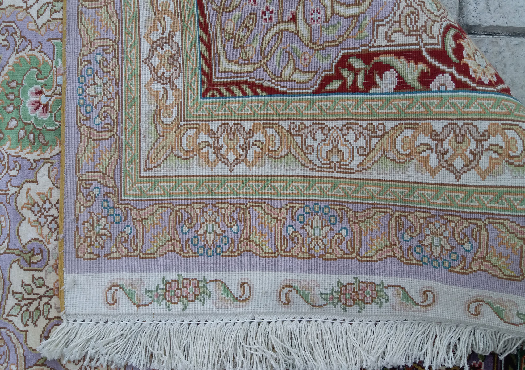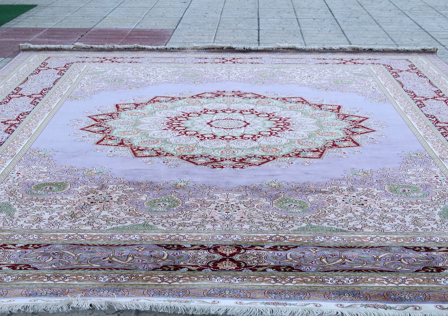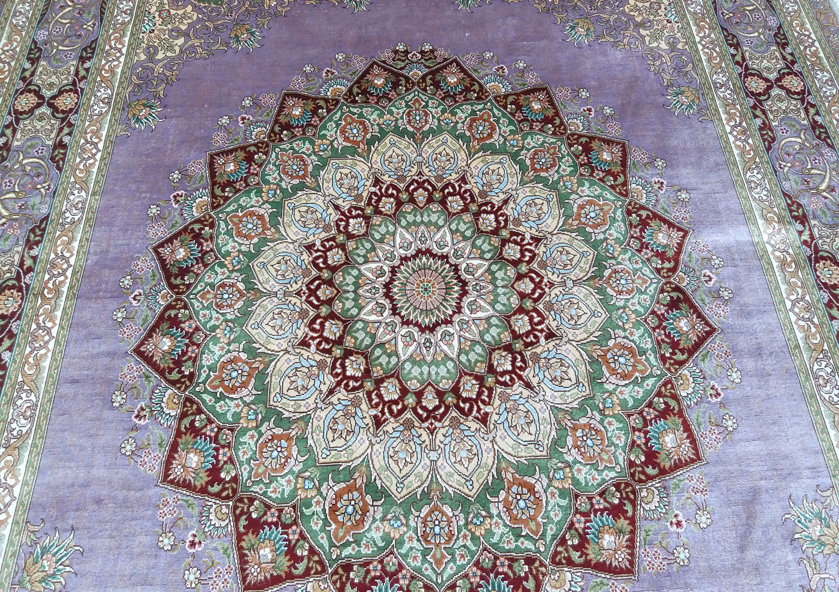 2.40x1.69=4.06, YENİ, SÜPER KALİTEYLE DOKUNMUŞ KUM İPEK HALININ 1 cm²’sinde 100 DÜĞÜM BULUNMAKTADIR.10x10 İRAN KUM İPEK HALISI NADİR DOKUNAN ÖLÇÜDÜR. MUHTEŞEM LİLA TONLAR VE KALİTEYLE DOKUNMUŞTUR.KUSURSUZDUR.