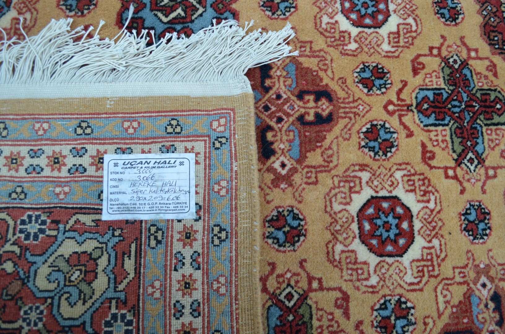 2.90x2.09=6.06 m2, 20-30 YIL ESKİ, ATKI ÇÖZGÜ PAMUK, 1 cm2=36 DÜĞÜM(6x6), SÜPER KALİTE YÜN, BOYA VE İŞÇİLİK, SEVİLEN "KAFKAS" MOTİFİ VE ÇARPICI NADİR DOKUNAN HARDAL RENK TONLARI KULLANILMIŞTIR, KAÇIRILMAZ FİYAT.