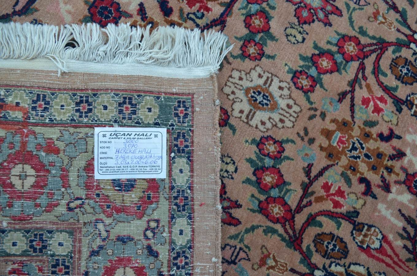 3.03x2.00=6.06 m2, 20-30 YIL ESKİ, ATKI ÇÖZGÜ PAMUK, 1 cm2=36 DÜĞÜM(6x6), SÜPER KALİTE YÜN, BOYA VE İŞÇİLİK, SEVİLEN "YEDİ DAĞIN ÇİÇEĞİ" MOTİFİ VE DEVE TÜYÜ ZEMİN RENK TONLARI KULLANILMIŞTIR, KAÇIRILMAZ FİYAT.