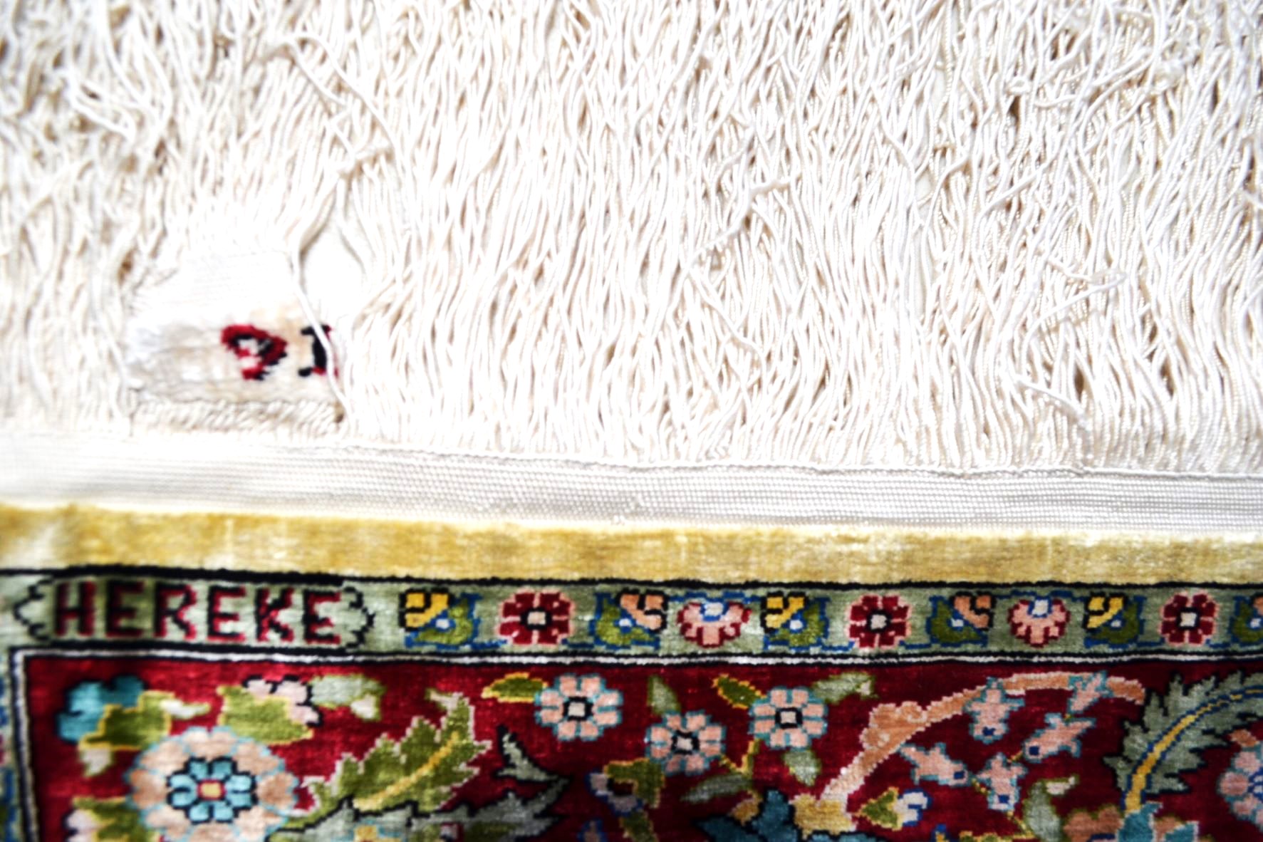 0.86x0.64=0.55 m2, YENİ, 1 cm²=100 DÜĞÜM, 1 M2 SİNDE 1 MİLYON DÜĞÜM BULUNAN MUHTEŞEM RENK VE DESENLERLE DOKUNMUŞ BİRİNCİ SINIF, SÜPER KALİTE HEREKE İPEK HALISI NADİR DOKUMADIR, DÜNYACA ÜNLÜ ŞAHASER HEREKE HALILARIMIZDANDIR. "HEREKE" YAZISI MEVCUTTUR.KUSURSUZ, MUHTEŞEM BİR SANAT ESERİDİR.