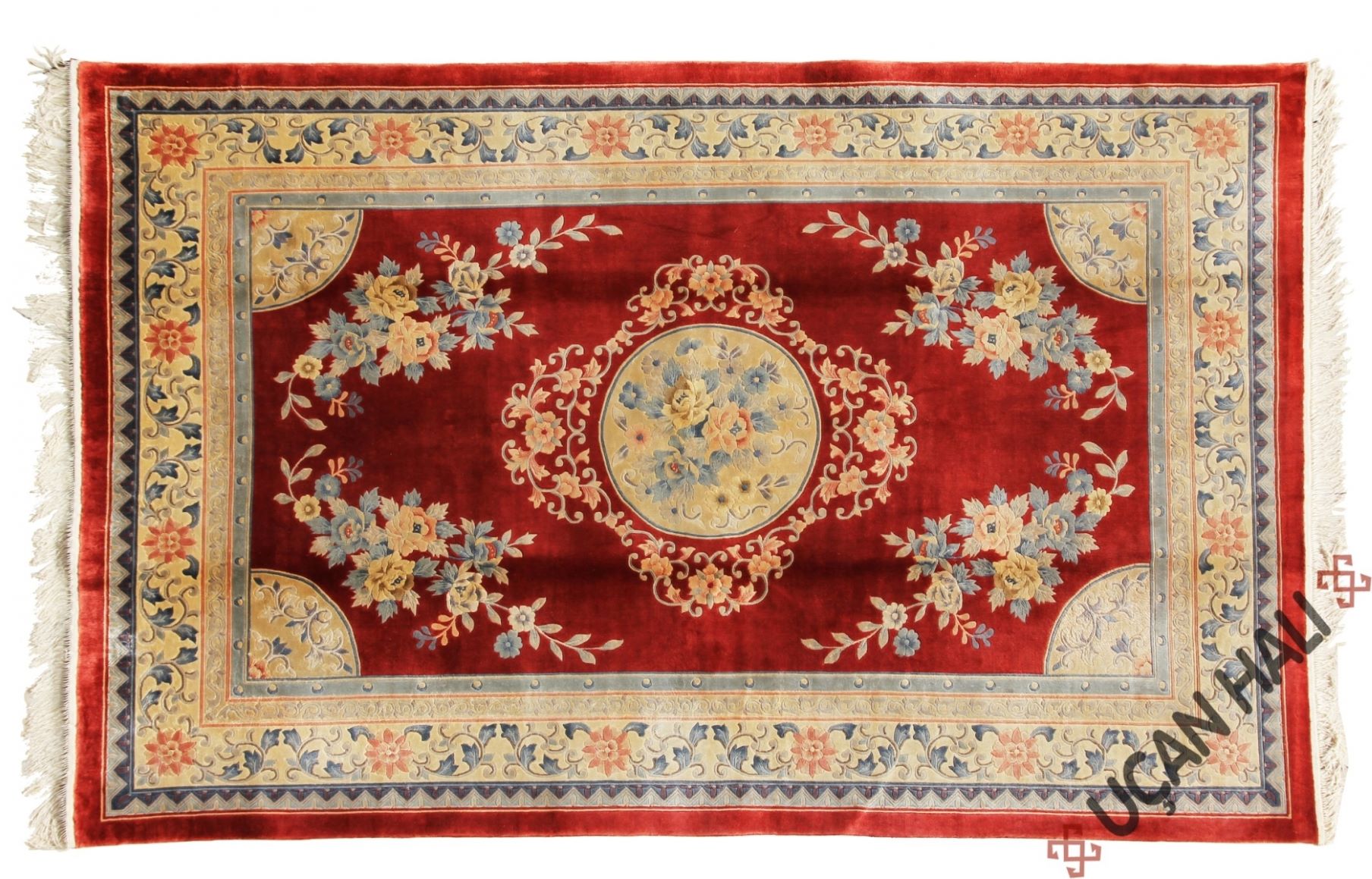 2.75x1.82=5.00 m2, TAMAMI İPEK, SÜPER İŞÇİLİKLE DOKUNMUŞ, KARAKTERİSTİK KABARTMA GÜL MOTİFLERİ KULLANILMIŞ, NADİR ÇIKAN ÇİN İPEK HALISI.