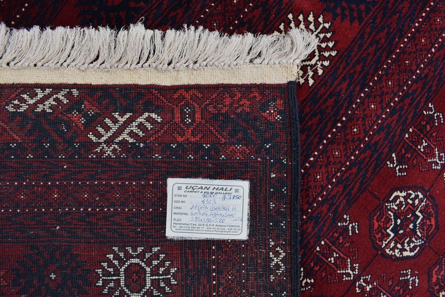 2.93x1.98=5.80, YENİ,SÜPER İŞÇİLİK VE MALZEMEYLE DOKUNMUŞ 1 cm²’DE 49 DÜĞÜM BULUNAN TAMAMI EL İPİ VE KÖK BOYA AFGAN BUHARA HALISINDA KARAKTERİTK GÜL MOTİFLERİ DOKUNMUŞTUR, SÜPER UYGUN FİYAT.