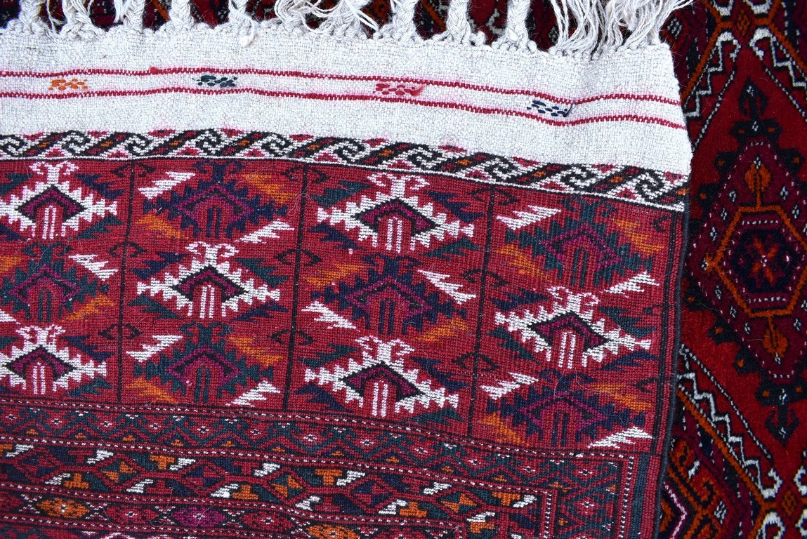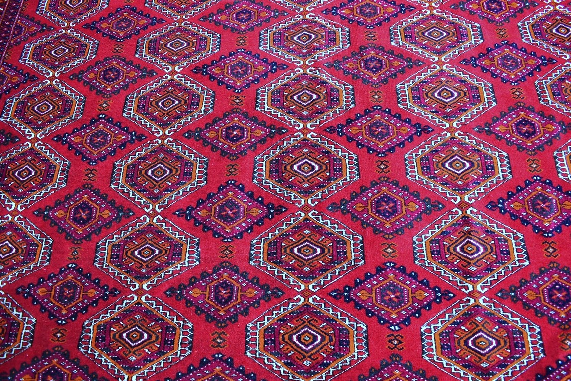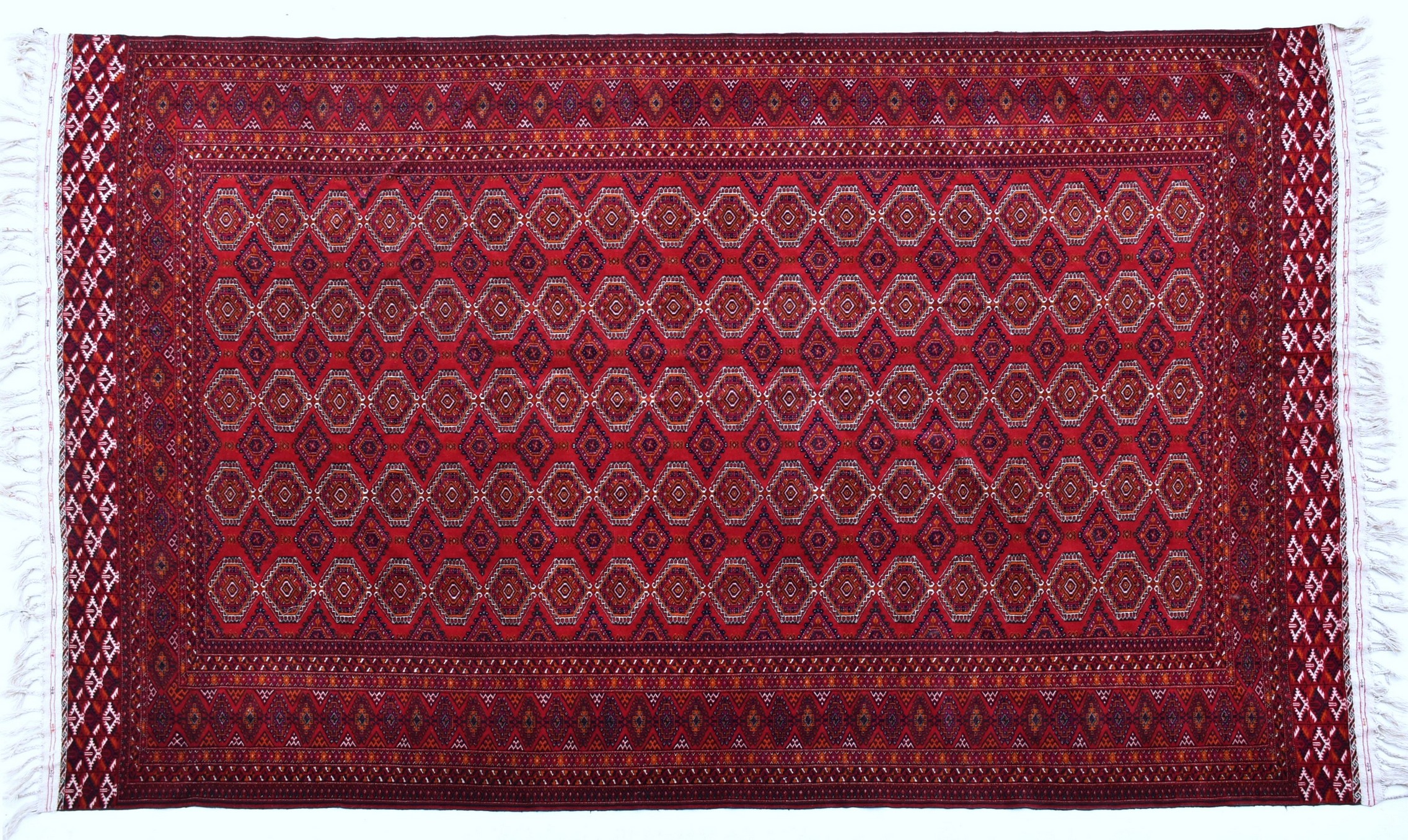 İPİ(KİRMAN), KÖK BOYA, BİRİNCİ SINIF İŞÇİLİKLE DOKUNMUŞ, SÜPER KONDÜSYON, NADİR TÜRKMEN BUHARA HALISI, SEVİLEN BORDO RENK TONLARI KULLANILMIŞ.KAÇIRILMAZ FİYAT.