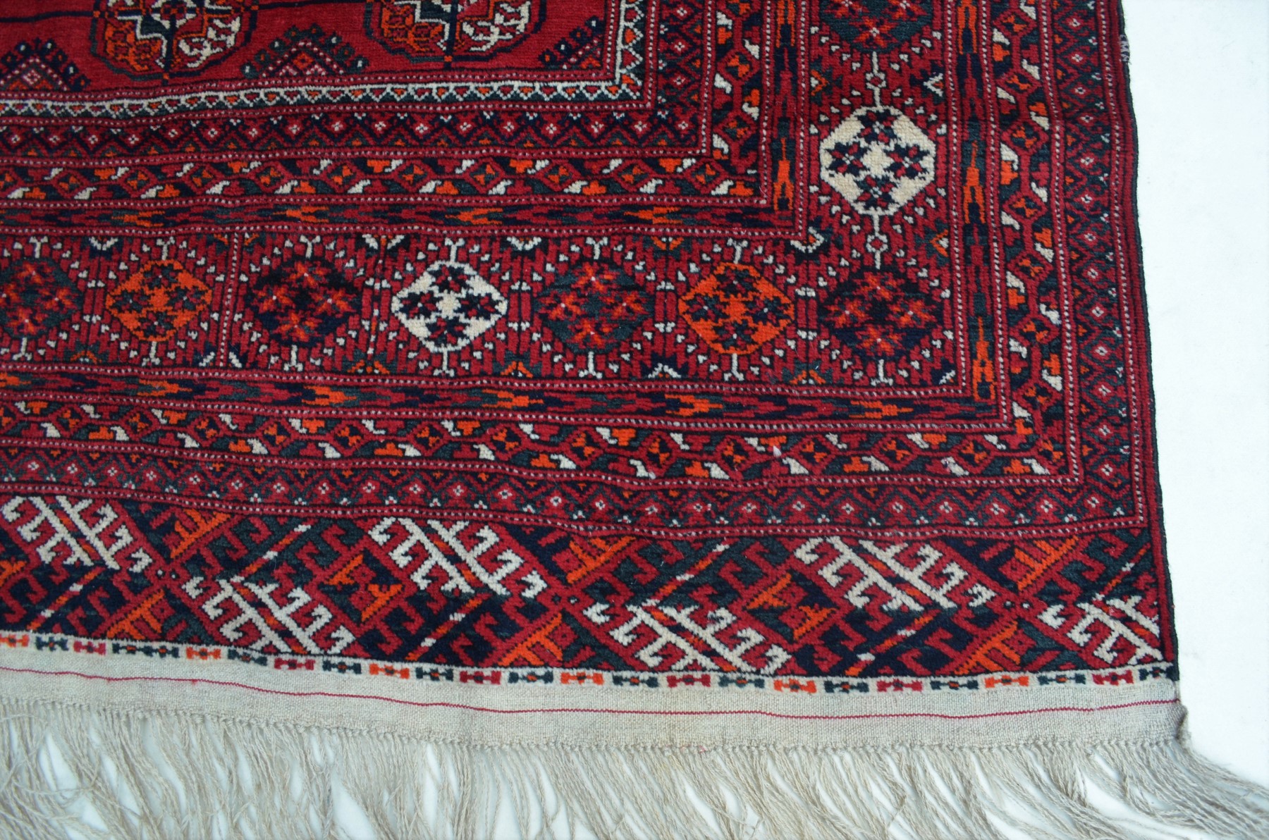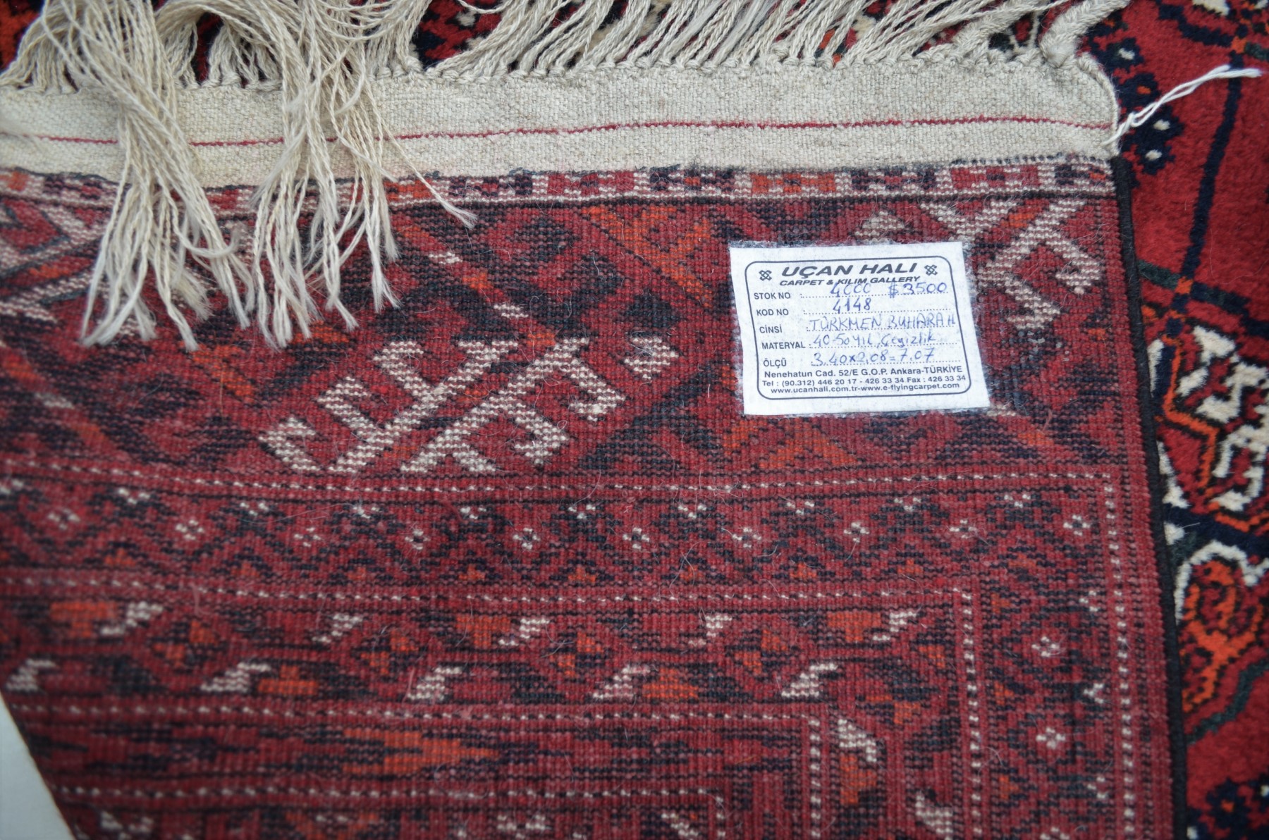 3.40x2.08=7.07, SÜPER KALİTEYLE ÇEYİZLİK DOKUNMUŞ, 40-50 YIL ESKİ, EL İPİ(KİRMAN), KÖK BOYA, NADİR TÜRKMEN BUHARA HALISI, NADİR DOKUMA VE NADİR DOKUNAN ÖLÇÜDÜR.