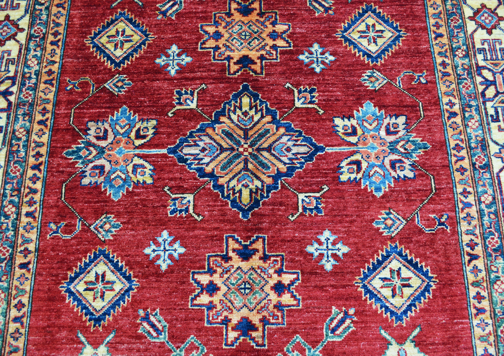 2.25x1.47=3.31, MÜKEMMEL BİR İŞÇİLİK SUNAN BU YENİ ŞİRVAN HALISININ SÜPER KALİTE PARLAK YÜNÜ VAR, TAMAMI KÖK BOYAYLA DOKUNMUŞ VE KAFKAS DESENİ KULLANILMIŞTIR.