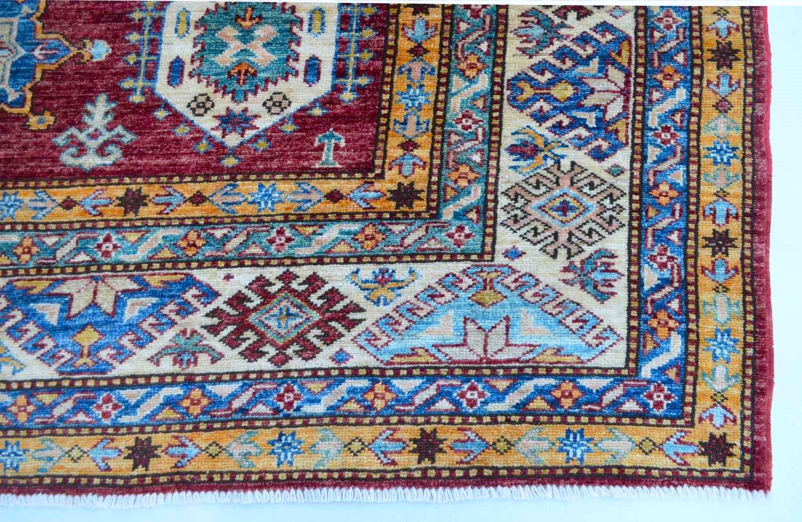 2.48x1.70=4.22, MÜKEMMEL BİR İŞÇİLİK SUNAN BU YENİ ŞİRVAN HALISININ SÜPER KALİTE PARLAK YÜNÜ VAR, TAMAMI KÖK BOYAYLA DOKUNMUŞ VE KAFKAS DESENİ KULLANILMIŞTIR, KİRMAN İPİYLE DOKUNMUŞTUR.