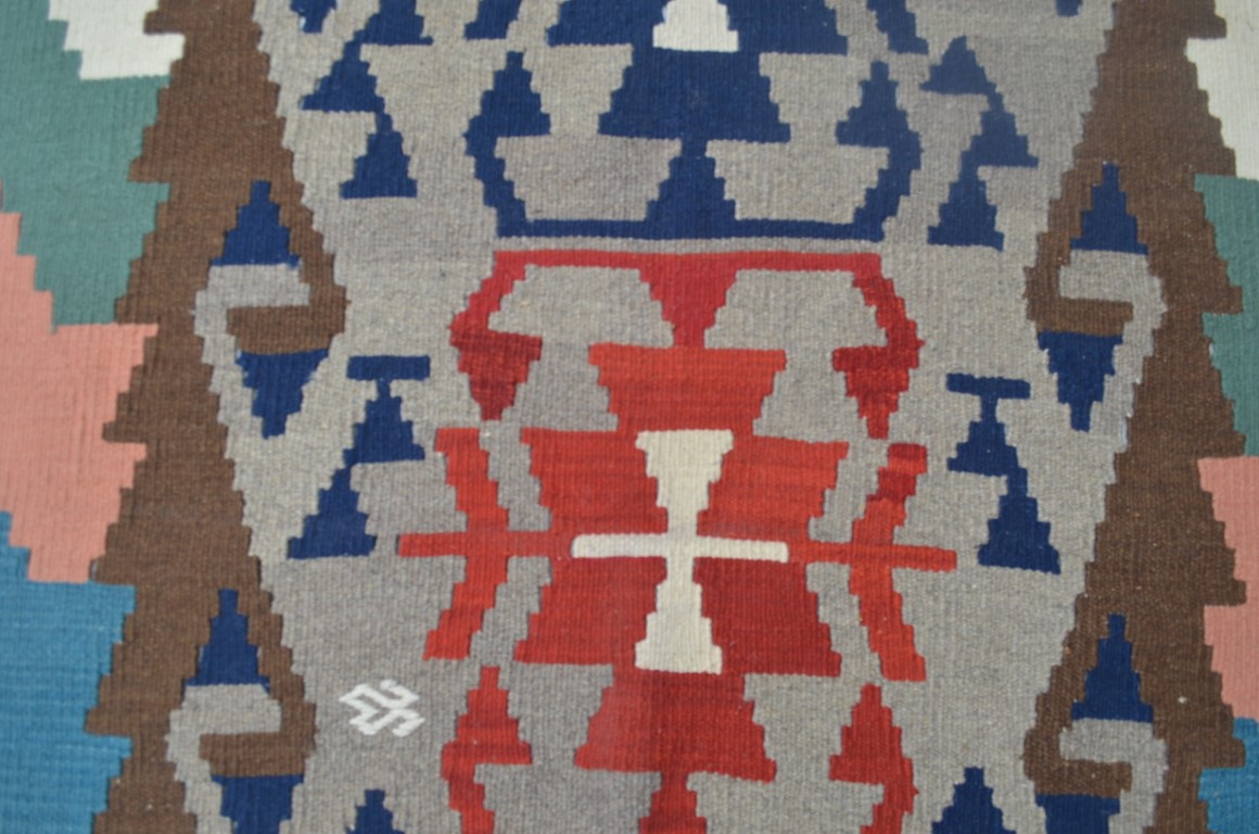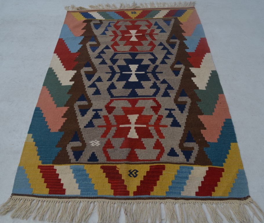 1.65x1.07=1.77 m², YENİ, KOÇ BOYNUZU MOTİFLERİYLE DOKUNMUŞ, TAMAMI YÜN DEKORATİF, İYİ KALİTE KAYSERİ KİLİMİNİN DOKUMA KALİTESİ GÜZELDİR.