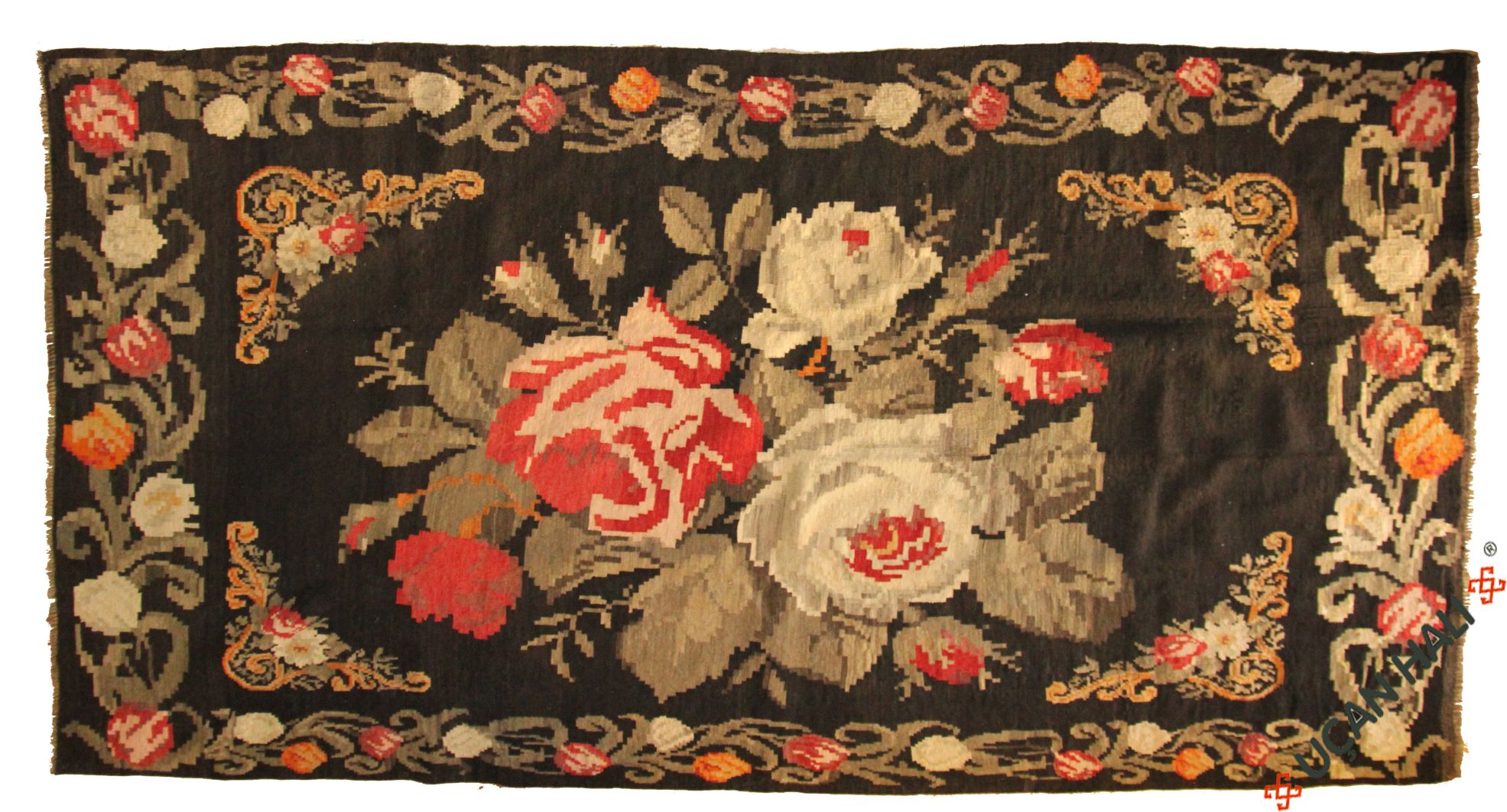 2.82x1.65=4.65, 50-60 YIL ESKİ, SÜPER İŞÇİLİKLE DOKUNMUŞ, KÖK BOYA, ÇEYİZLİK DOKUMA KARABAĞ KİLİMİNDE KARAKTERİSTİK GÜL MOTİFLERİ KULLANILMIŞ.EŞSİZ DESEN VE RENKLER.